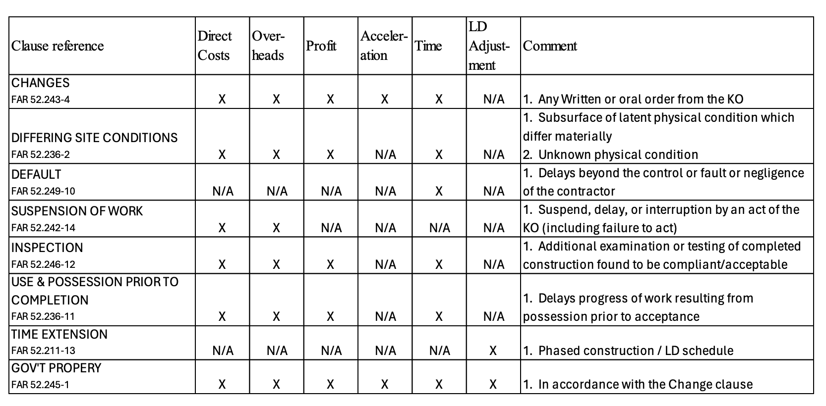 - Utilize Federal Acquisition Regulation (FAR) clauses in your serial letter. The following table provides a reference to the FAR clauses that will be used to remedy contractual issues (Carlson):